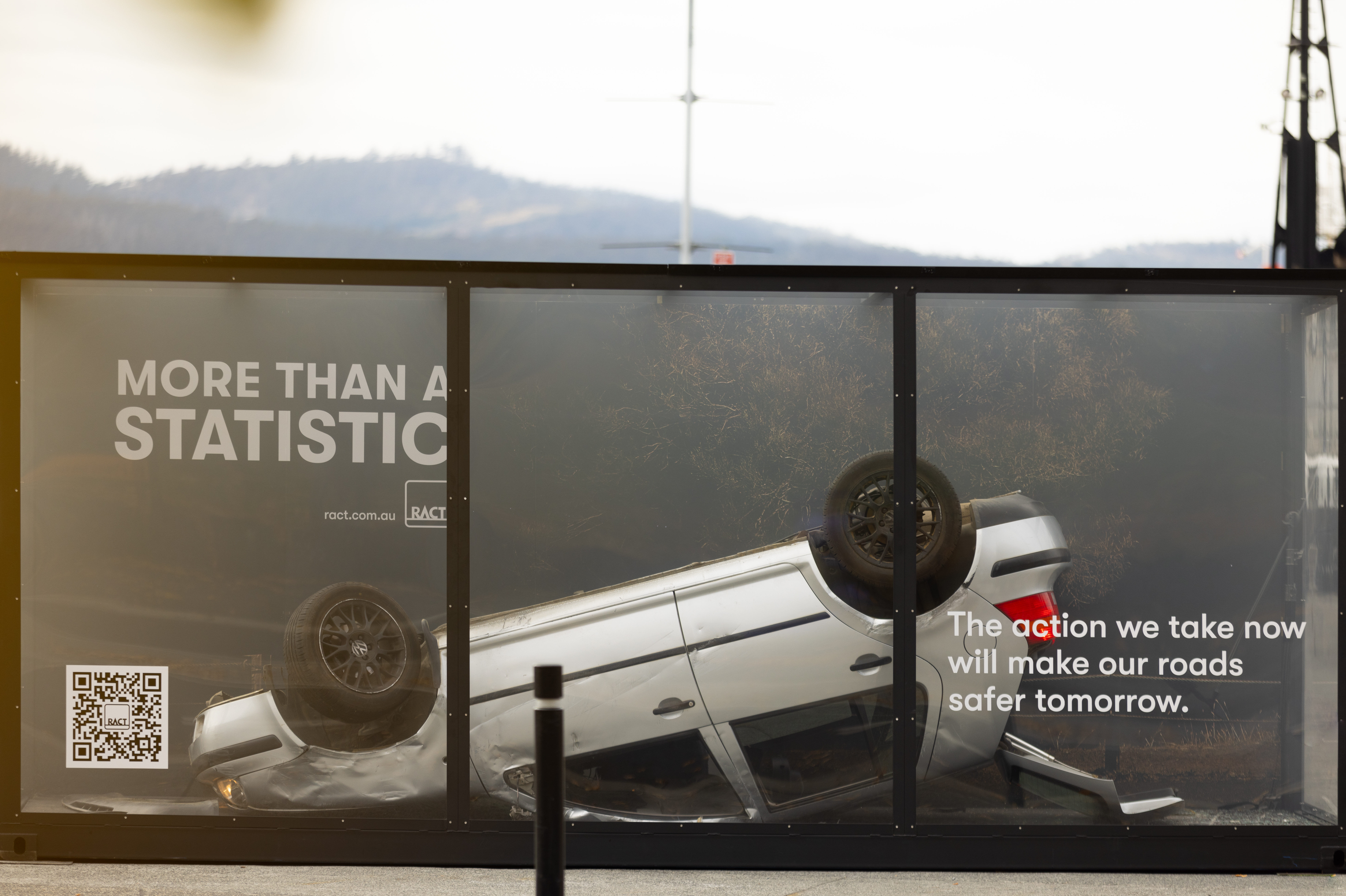 The confronting scene of a serious road crash has been captured in an installation to be displayed on Hobart’s waterfront during National Road Safety Week (NRSW).