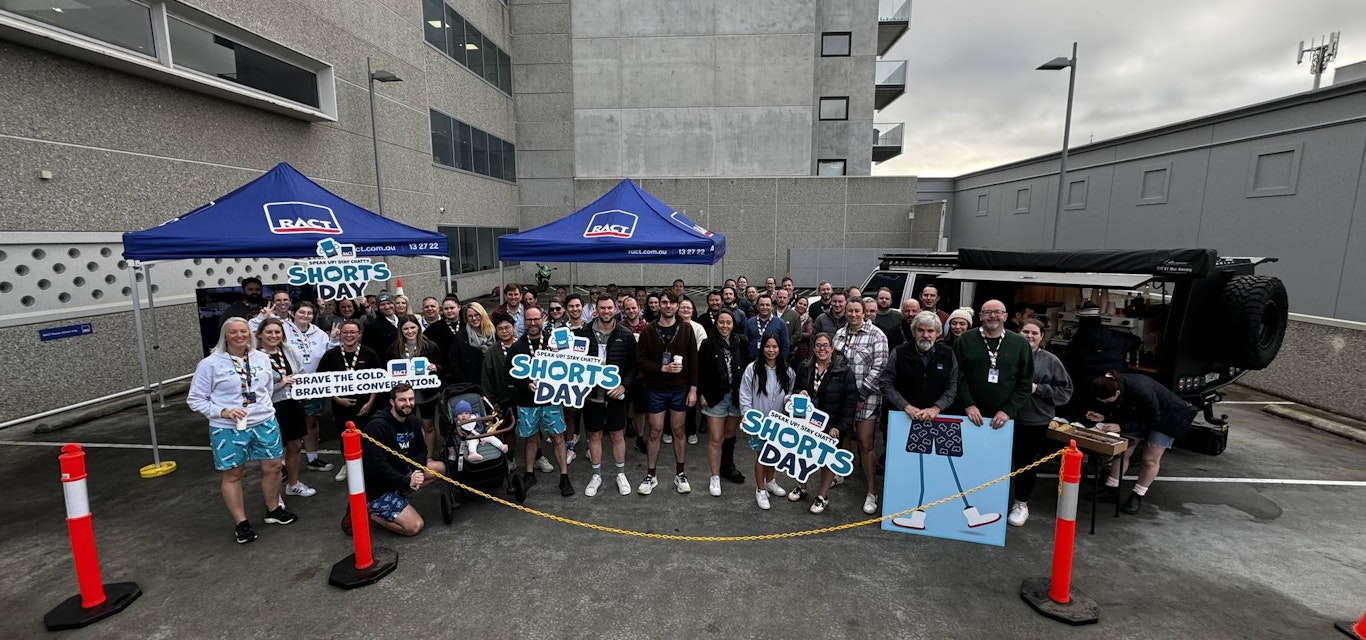 RACT is proudly standing with Shorts Day, holding events across Tasmanian branches and offices on the day and encouraging its teams to brave the elements and step up to initiate discussions on mental health.
