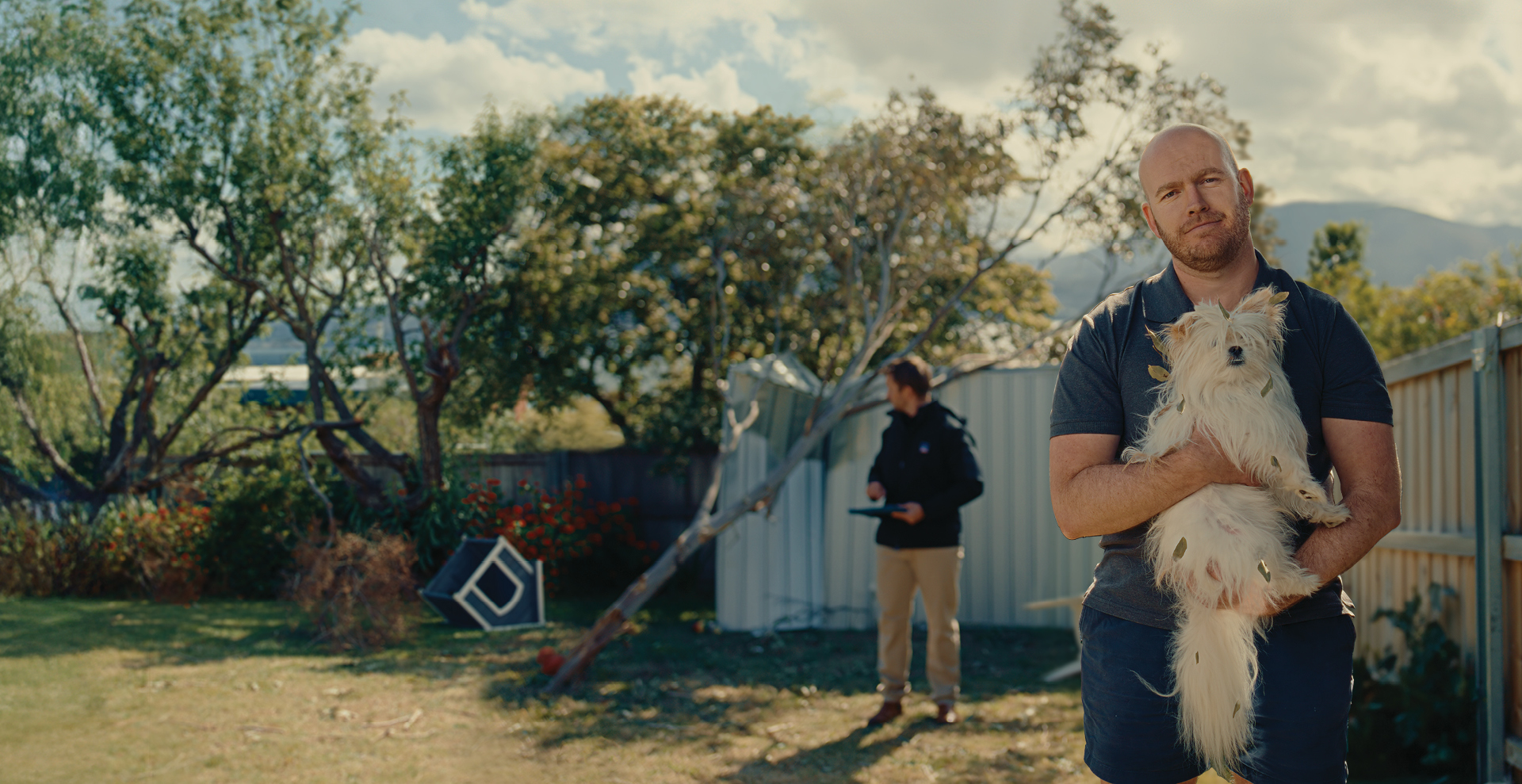 Our 'Tranmere tradewinds' campaign takes a lighthearted look at these wild weather moments, with a nod to the fact that we know local risks, because we live here too. We named it after the riverside suburb, Tranmere, in Hobart that is very familiar with fierce winds. In our new ad, you'll spot a shed that's seen better days, and a dog that's been swept right over the fence (don’t worry, no dogs were harmed during filming!)