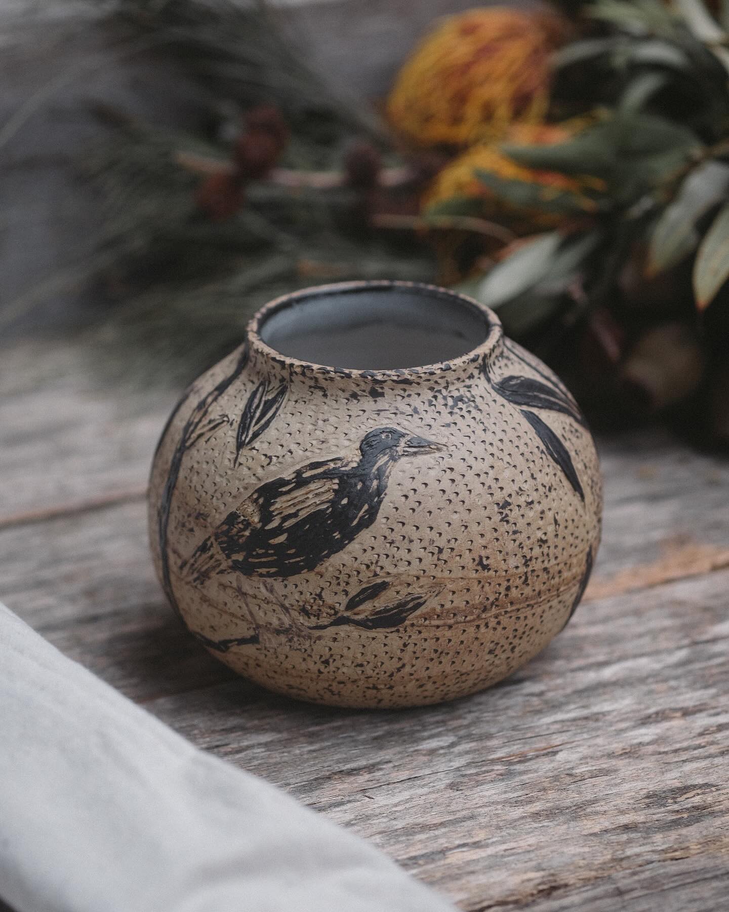 With a background in community outreach and years spent in remote First Nations communities, Ruth’s understanding of the conversation between the land and the art it produces and inspires is richer than most. She procures wild clay from a variety of locations across north, west and central Tasmania in partnership with Mineral Resources and local landowners, joking that locals know to “look out for Ruth from Roland!”